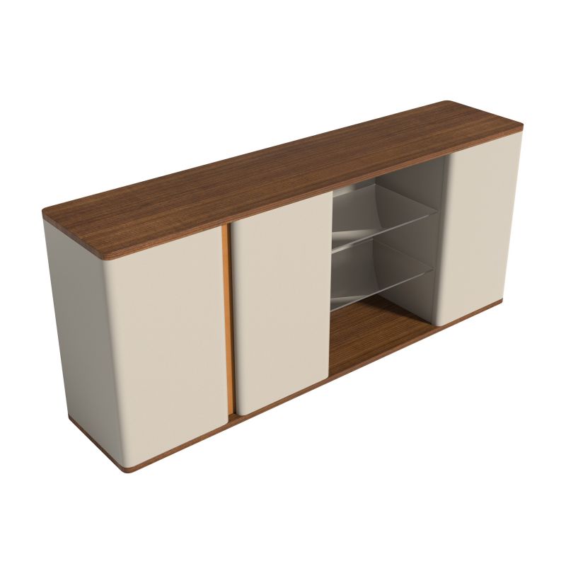 開放式層板采用清璃材質(zhì),對(duì)開掩門拉手處采用捫皮工藝